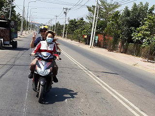 女性2名を伴って移動手段はベトナムでは一般的なバイクです。