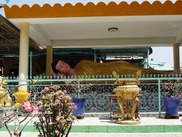 ★工事中?の涅槃像に手を合わせてきました。ハスもまだシーズンではないのでほとんどありません。