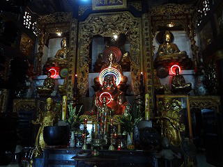 中は色々な仏様が沢山祭ってあり、参拝者は各々の仏様を順に線香を手向けながら