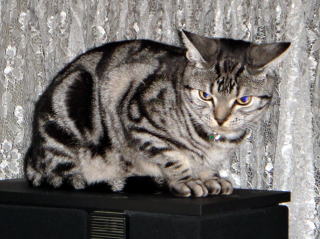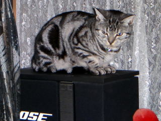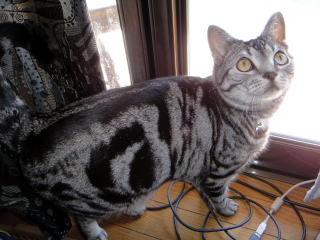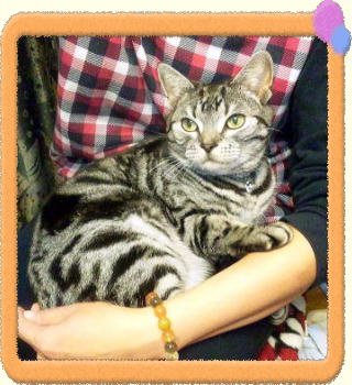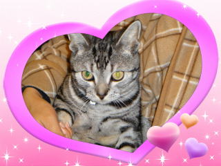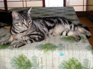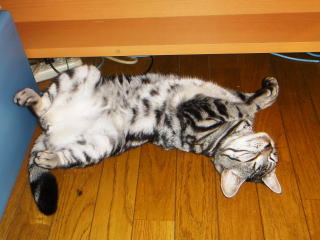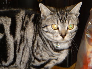 | 2009年から我が家に仲間入りをしたAmerican Shorthairの銀(Gyin)です。 購入すると何万円もするそうですが、お友達から譲っていただいたそうです。 (生年月日は2009年4月2日生まれの雄猫です。) 前の手を揃えて座ると中央に♥が浮かび上がります。最近は太ったので♥の形も変形してきています。 管理人の再就職により、家の中では管理人代行を務めて、我が家の主として活躍しています。 |