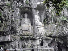 中国禅宗十大古刹一つで、飛来峰に彫られた石仏で有名です |