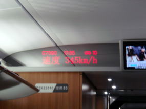 新幹線内の速度計はMax.351km/h(画像はシャッターチャンスを逃して345kmです。)を