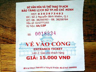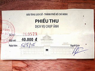 入口でチケット(1万5千VND=約84円)を買うのですが、内部を撮影するときは