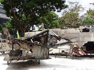 ◆博物館からサイゴン大聖堂を目指して歩く途中に飛行機残骸の屋外展示のある建物を見つけました。