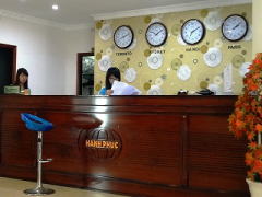 フロントの壁の各国の時間表示がTORONT/SYDNEY/HANOI/PARIS/そしてTOKYO