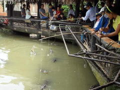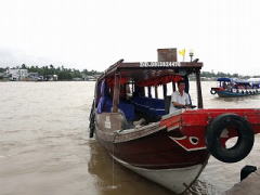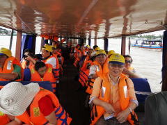 ★ホテルより埠頭までバスで行き、そこから水上マーケットに向かう中型船に乗ります