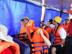 ★乗客はオレンジ色のライフジャケットを付けていざ出発です
