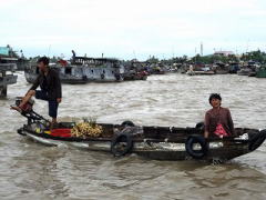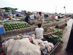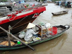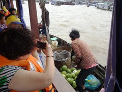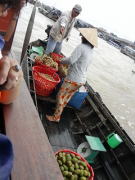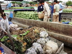 ★マーケットエリアに近づくと私たちの乗っている船にフルーツを積んだ小舟が次々と