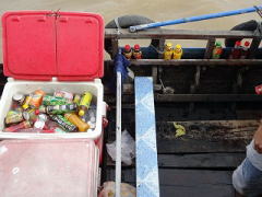 ★小舟はロープ1本を観光船に引掛けて固定して、商売を始めます
