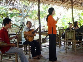 ■一弦の楽器とギターの伴奏でドン・カ・タイ・トウ(無形文化遺産の伝統的民謡)を鑑賞します