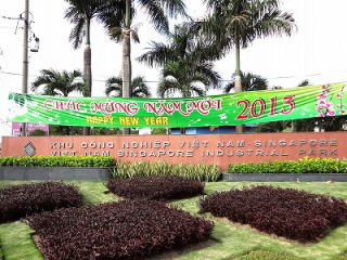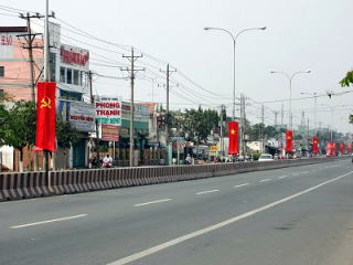| 道路には国旗(ベトナム国旗と党旗)が連なって付けられ、街の至るところに新年を祝う飾りが眼立つようになりました |