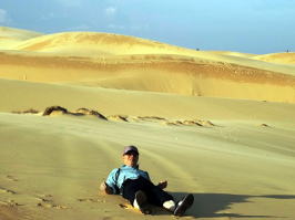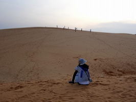 きれいな砂紋が見えるはずですが、人の足跡ばかりで残念です。17時半を過ぎているけれど砂丘では