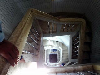 中央にラセン階段があり、上部に行くほど狭くなります。