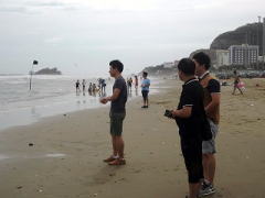 食事の後は「海水浴?」と言うことで一応ビーチにやってきましたが、台風の余波で