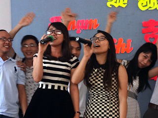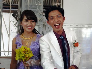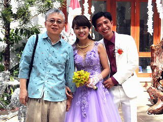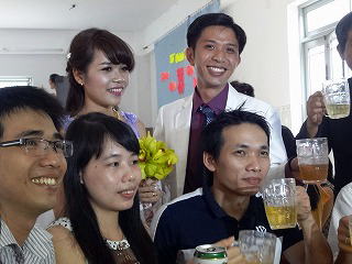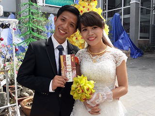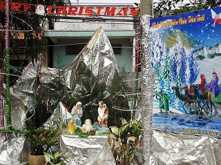 Duong省ではほとんどお寺しか見ません) 季節はちょうどノエル前の時期で(旧暦なのでまだ12月25日になっていない)多くの飾りつけを見ることが出来て楽しかったです。 今回のご両人も教会で知り合ったと聞きました。 |