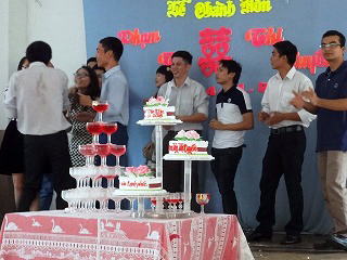 | 会場内はこんな感じです。ベトナムの披露宴は旦那さん関係,奥さん関係、など離れた場所で何回も実施するそうです。 |